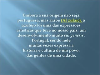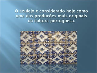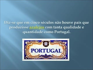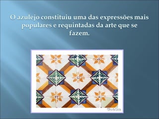 Os portugueses não inventaram os azulejos, mas produziram os de maior qualidade ao longo de cinco séculos. O documento discute o trabalho de João Carlos e Diogo Mendes sob a supervisão dos professores Paulo Xavier e Leopoldina Manteigas.