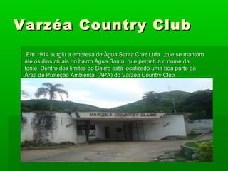 Em 1914 surgiu a empresa Água Santa Cruz Ltda. que ainda opera no bairro Água Santa, nomeado após uma fonte local. Parte do bairro está dentro da Área de Proteção Ambiental do Varzea Country Club. Recentemente, a Linha Amarela cortou a área e trouxe mudanças, incluindo um pedágio e o Túnel da Covanca. O presídio Ary Franco foi construído em 1974 e realiza festas em junho para Santo Antônio com comidas típicas e procissão.