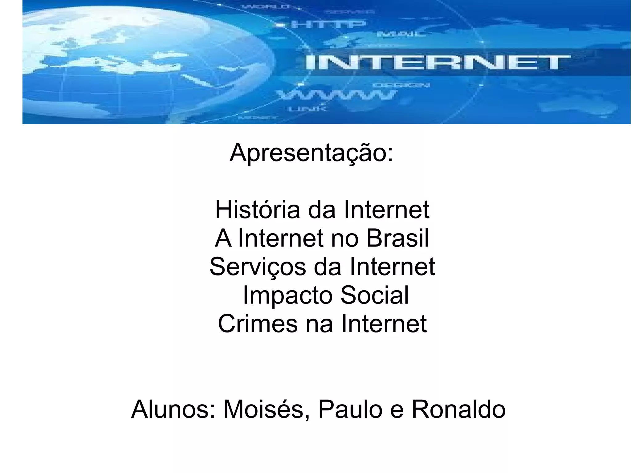 A Internet surgiu nos EUA nos anos 1960 como uma rede militar descentralizada para comunicações de emergência, mas logo se expandiu para uso acadêmico. Em 1990, Tim Berners-Lee criou a World Wide Web, tornando a Internet acessível ao público geral e permitindo seu crescimento exponencial através de sites e redes sociais como Orkut, Facebook e Twitter.