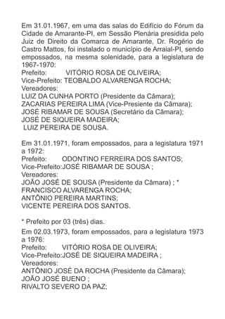 O povoado de Arraial formou-se após a retirada dos índios da região. Em 1920, o Cônego Antônio Cardoso iniciou a construção da igreja do povoado, que foi elevado à categoria de município em 1963 sob o nome de Arraial. Em 31 de janeiro de 1967, Arraial foi oficialmente instalado como município.