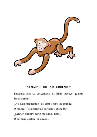 1) Um macaco teve o rabo cortado por zombaria dos outros e tentou trocar o rabo por outros itens;