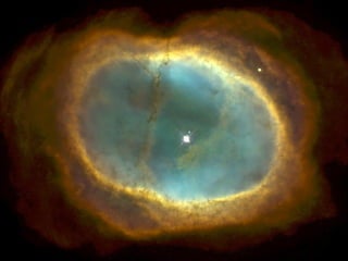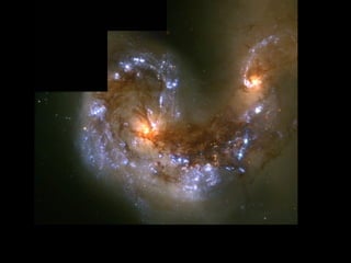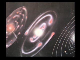 O documento fornece informações sobre unidades de medida astronômicas como ano-luz e unidade astronômica, além de detalhar a distância entre a Terra, Sol e Lua. Também apresenta a estimativa atual da idade do universo em 13,77 bilhões de anos e fala sobre a formação de asteroides e como observamos objetos cada vez mais distantes à medida que olhamos para o passado mais distante.