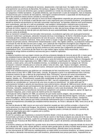 O documento descreve a história econômica do Brasil desde o século XVI, quando a economia era baseada na extração do pau-brasil, até o século XX. Os principais ciclos econômicos incluem a cana-de-açúcar, mineração, café e borracha. A economia passou de uma base agrícola e extrativista para um modelo mais industrializado no século XIX, liderado pelo setor cafeeiro.