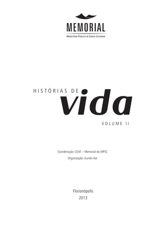 Este livro reúne 15 depoimentos de membros do Ministério Público de Santa Catarina que ingressaram na instituição entre 1950 e início dos anos 1970. Nas narrativas, abordam-se não apenas o Ministério Público mas também aspectos da história de Santa Catarina do meio do século XX até os dias atuais, de uma perspectiva pessoal e impressionista, falando de grandes eventos e do cotidiano do trabalho do promotor em diversas comarcas.