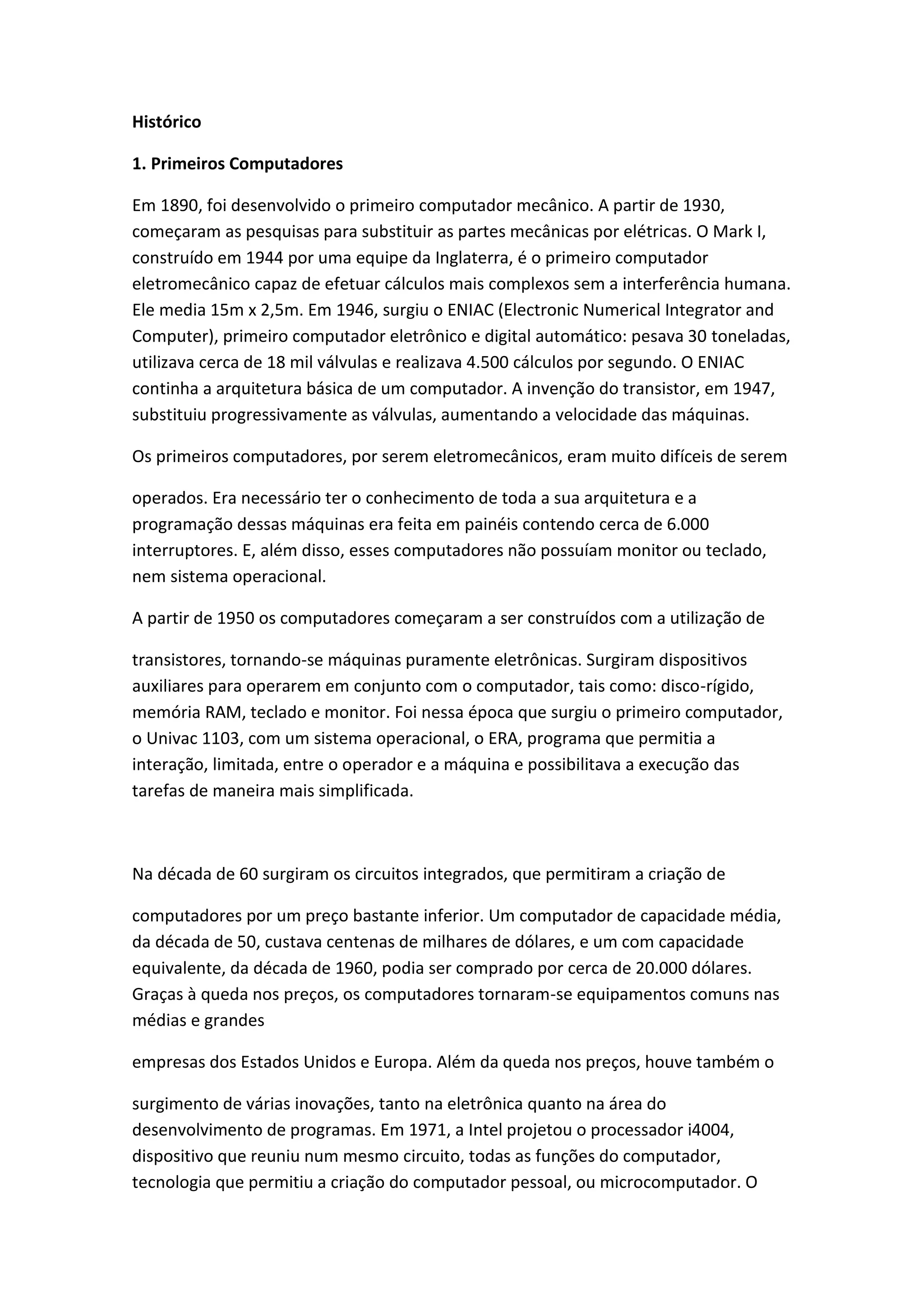 Os primeiros computadores eram eletromecânicos e difíceis de operar, enquanto os primeiros computadores eletrônicos surgiram na década de 1940 e usavam válvulas. Na década de 1950, os transistores substituíram as válvulas e dispositivos como discos rígidos e teclados tornaram os computadores mais fáceis de usar.