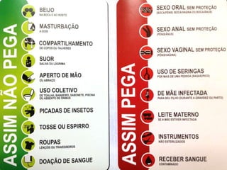 O documento discute o HIV/AIDS, incluindo o que é o vírus HIV, os sintomas da AIDS, diagnóstico, tratamento e estigma associado à doença. Explica que o HIV ataca as células de defesa do corpo e pode levar à AIDS se não tratado, e que o tratamento com medicamentos antirretrovirais pode controlar o vírus e prolongar a vida, embora exija adesão contínua.