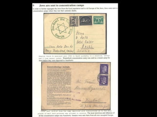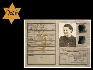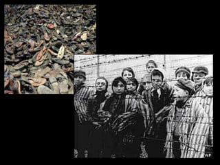 O documento descreve os horrores do Holocausto, incluindo as Leis de Nuremberga que estabeleceram a segregação racial na Alemanha nazista, a Kristallnacht em que sinagogas e lojas judaicas foram atacadas, o gueto de Varsóvia, a chegada em Auschwitz e as condições terríveis nos campos de concentração, com referências a Josef Mengele, os fornos crematórios e a libertação pelos Aliados.