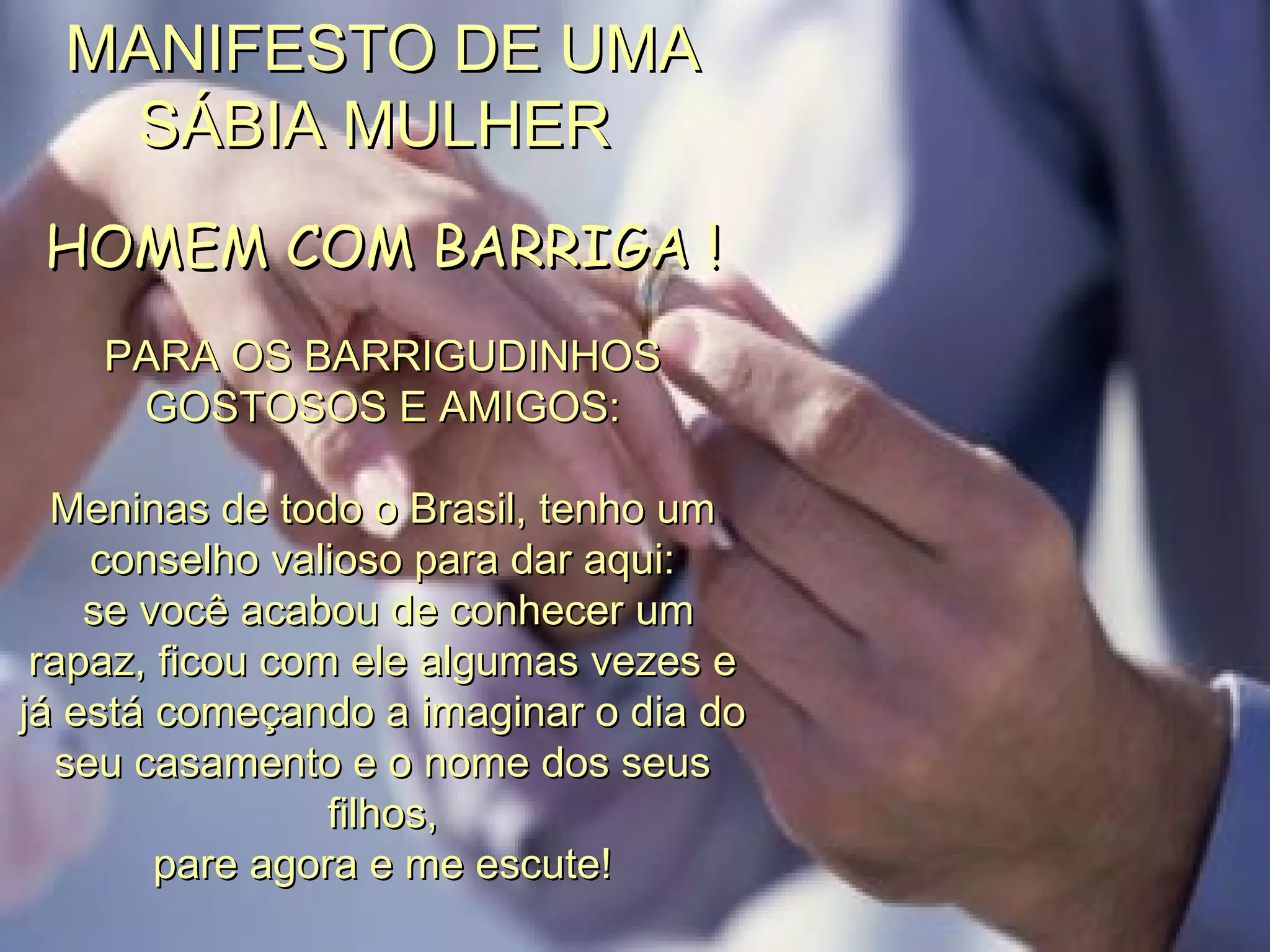 Este documento defende que homens com barrigas são melhores parceiros do que homens musculosos. Argumenta que homens com barrigas são mais descontraídos, gostam de comer e beber sem se preocupar com calorias, sabem cozinhar, são confortáveis e não se acham superiores. Recomenda fugir de homens musculosos e procurar aqueles com barriguinhas para uma relação mais feliz.