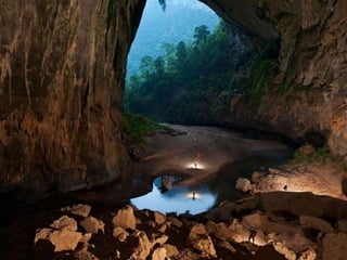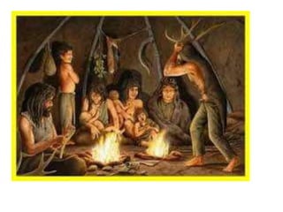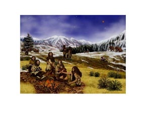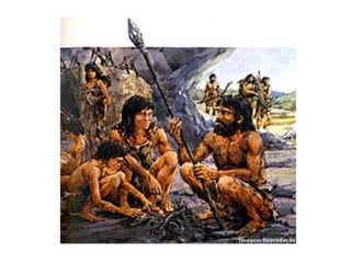 O documento discute o estereótipo do "Homem das Cavernas", referindo-se aos humanos da Pré-História que viviam em cavernas. Explica que o termo surgiu de suposições sobre a associação entre cavernas e os Neandertais. Também fornece definições de caverna, seus sinônimos e características, incluindo que podem ter galerias e salões horizontais ou verticais, e menciona pinturas rupestres.