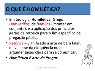 1) A homilética é a aplicação dos princípios da retórica para a pregação pública, baseada na Bíblia.