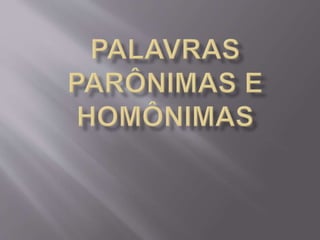 O documento apresenta vários pares de palavras que são grafadas de forma semelhante, mas têm significados diferentes (parônimas). São exemplos de confusões comuns em português como "diferir" e "deferir", "emerger" e "imergir", entre outros. O texto também explica o uso correto das preposições "porque" e "por quê" em diferentes contextos.