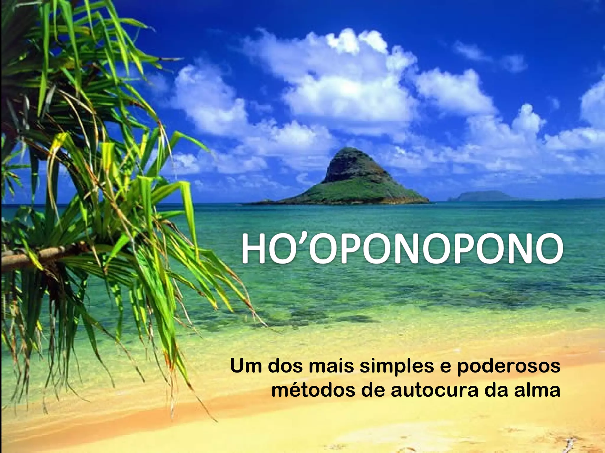 O documento descreve o método Ho'oponopono, criado pelo psicólogo havaiano Ihaleakala Hew Len. Ele conseguiu curar pacientes criminais insanos sem contato direto, apenas repetindo "Me perdoe, sinto muito, te amo, sou grato". O método se baseia na ideia de que todos somos um e o mal de um é o mal de todos, curando a si mesmo cura os outros. A prática envolve perdão de si mesmo e dos outros para purificar a mente.