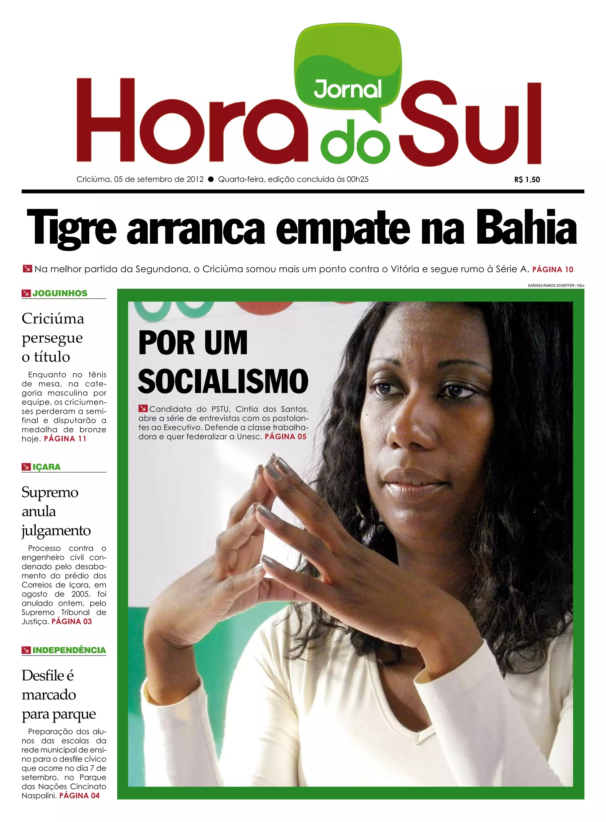 O Tigre arrancou um empate contra o Vitória na Segundona e segue rumo à Série A. O Supremo Tribunal de Justiça anulou o julgamento contra o engenheiro condenado pelo desabamento de prédio em Içara em 2005. A Santur vai apresentar o Plano de Marketing para o Turismo nas regiões catarinenses.