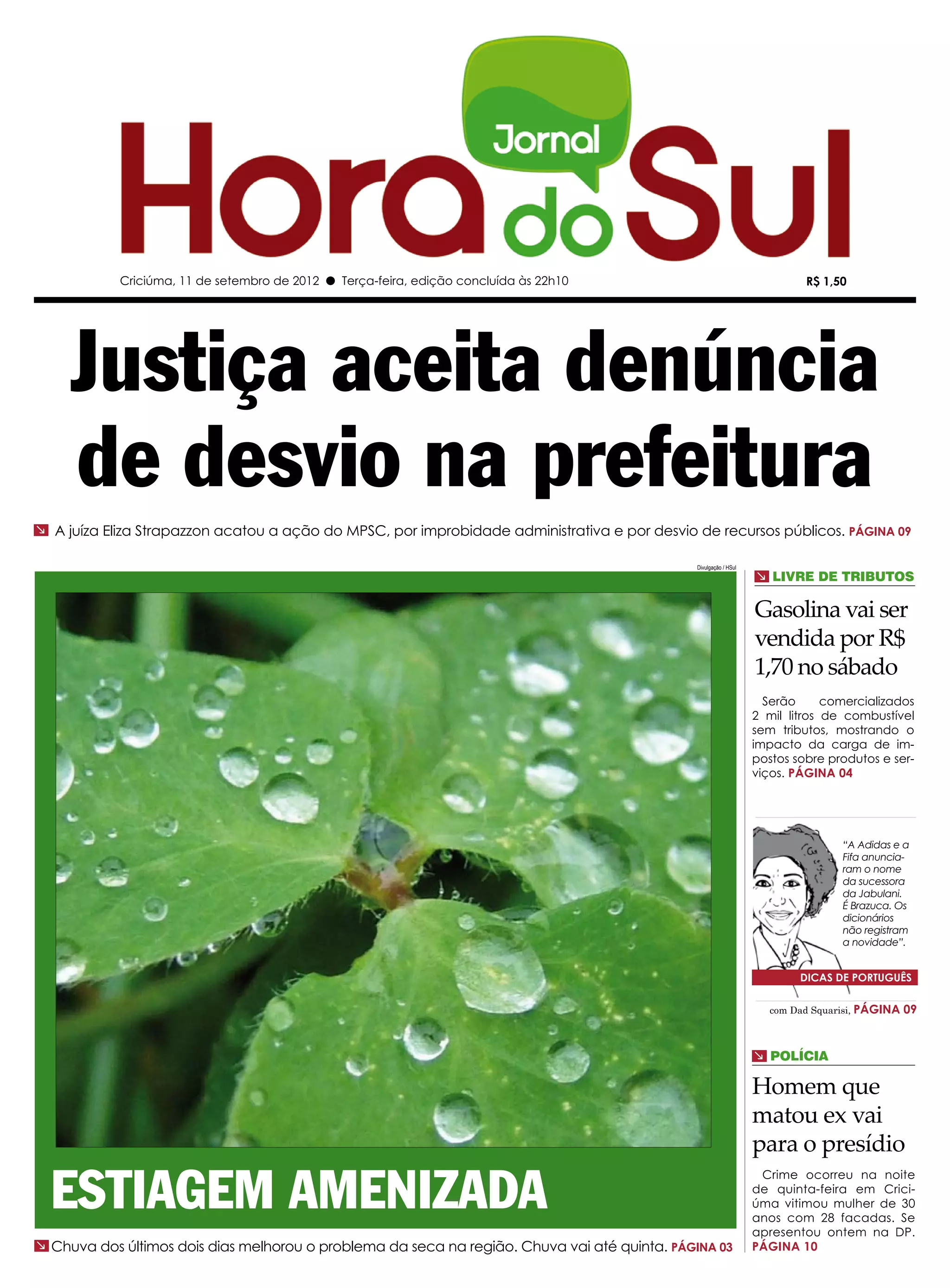 1) Uma juíza aceitou denúncia de desvio de recursos públicos na prefeitura de Criciúma.