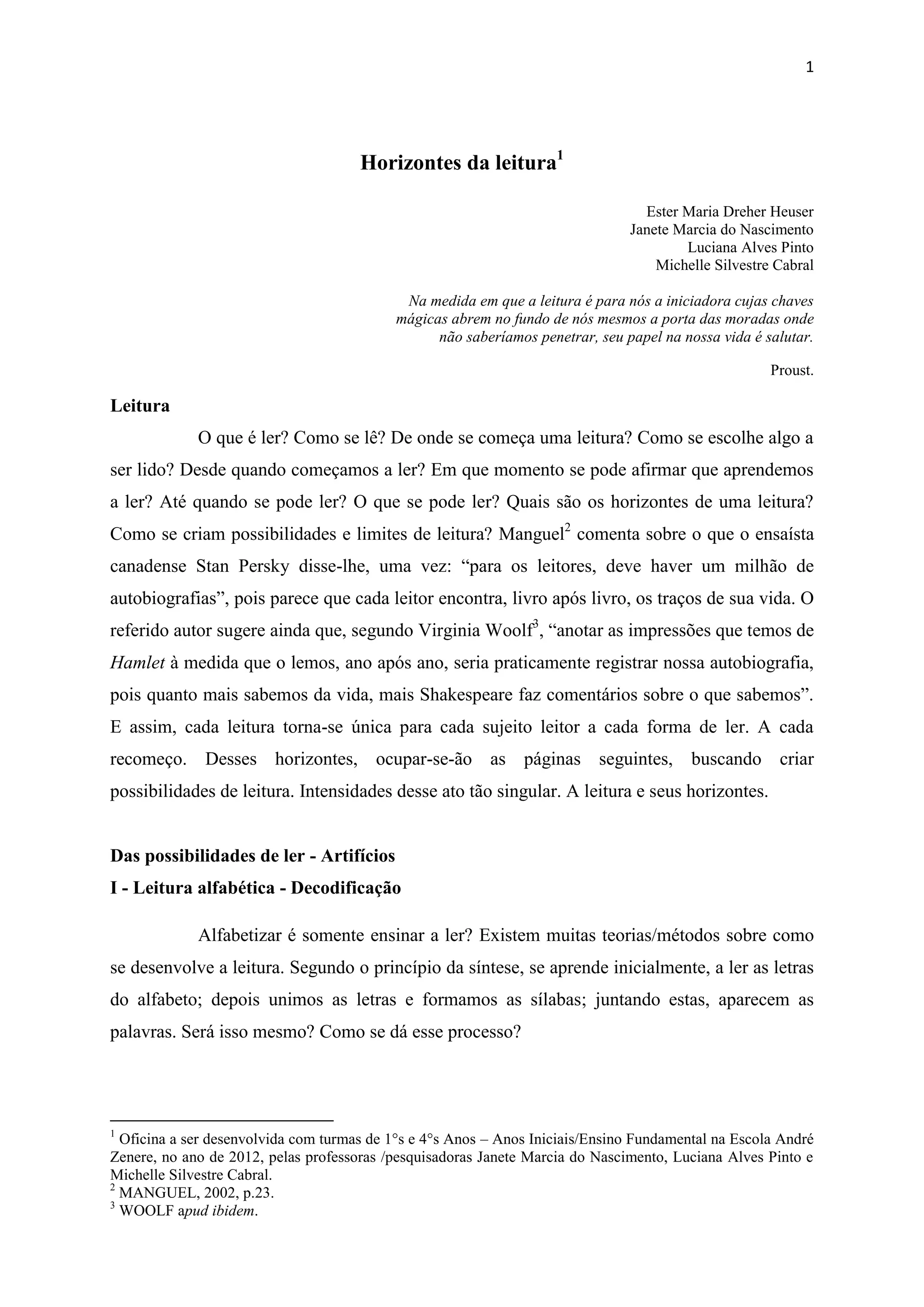 1. O documento discute os diferentes aspectos e possibilidades da leitura, desde a decodificação alfabética até leituras mais interpretativas e artísticas.