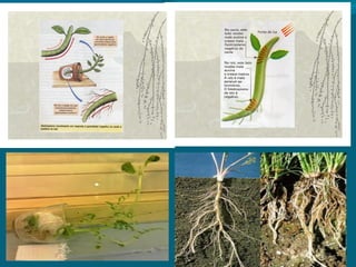 O documento discute hormônios vegetais (fitormônios) que regulam o desenvolvimento das plantas, incluindo auxinas, citocininas e giberilinas. Esses hormônios controlam processos como crescimento, germinação, amadurecimento de frutos e abscisão foliar. O etileno em particular induz o amadurecimento de frutos e a queda de folhas.
