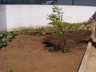 As crianças do 1o ano plantaram uma ameixoeira no Dia Mundial da Árvore e desde então vêm cultivando uma horta pedagógica com diversos vegetais como batatas, couves, tomates, milho, cenouras e alfaces, que continuam a crescer.
