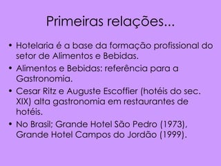 1) A hotelaria tem papel fundamental na formação profissional do setor de alimentos e bebidas;