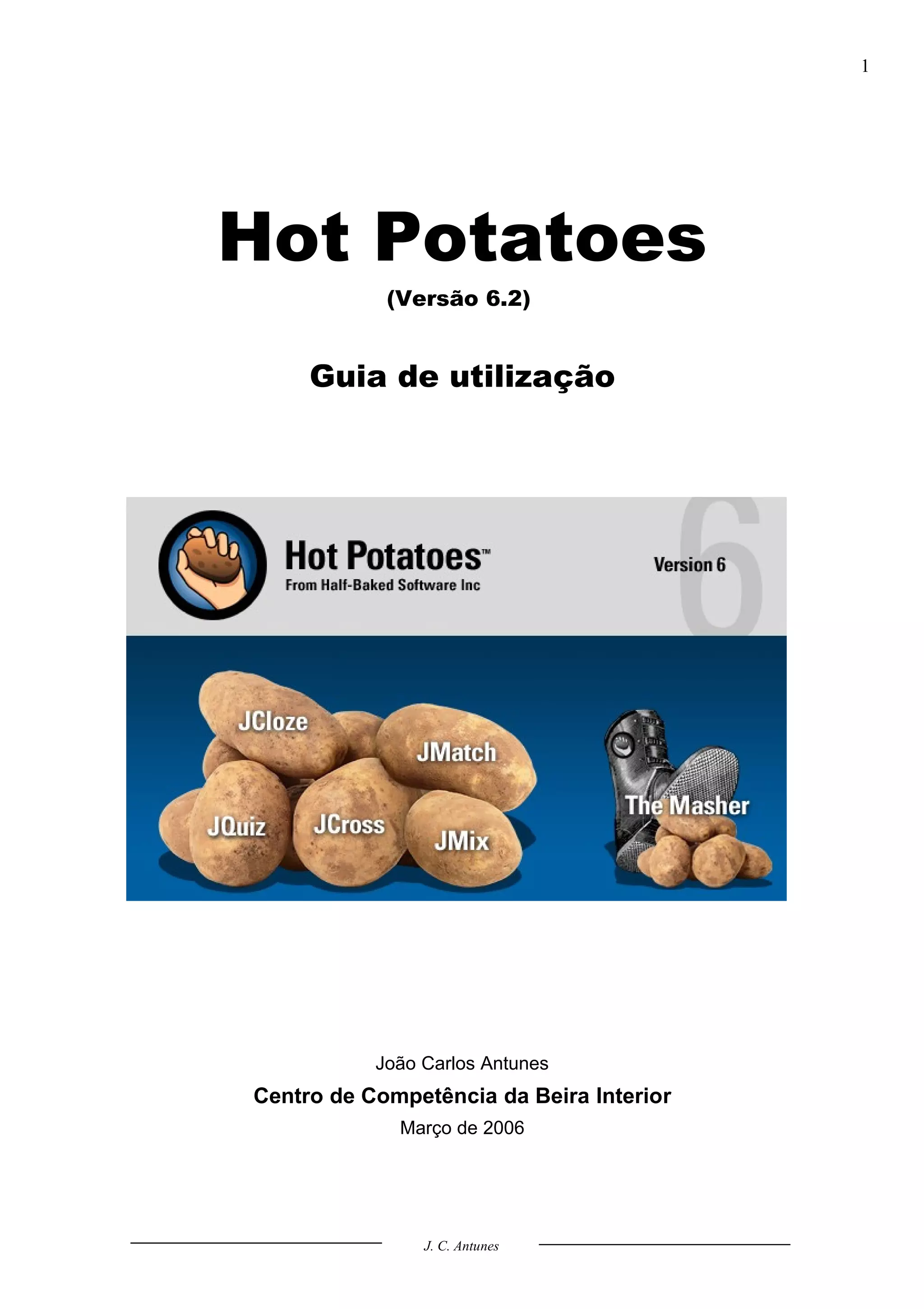 [1] Hot Potatoes é uma ferramenta gratuita para a criação de testes online interativos em cinco módulos: JQuiz, JMix, JCross, JMatch e JCloze.