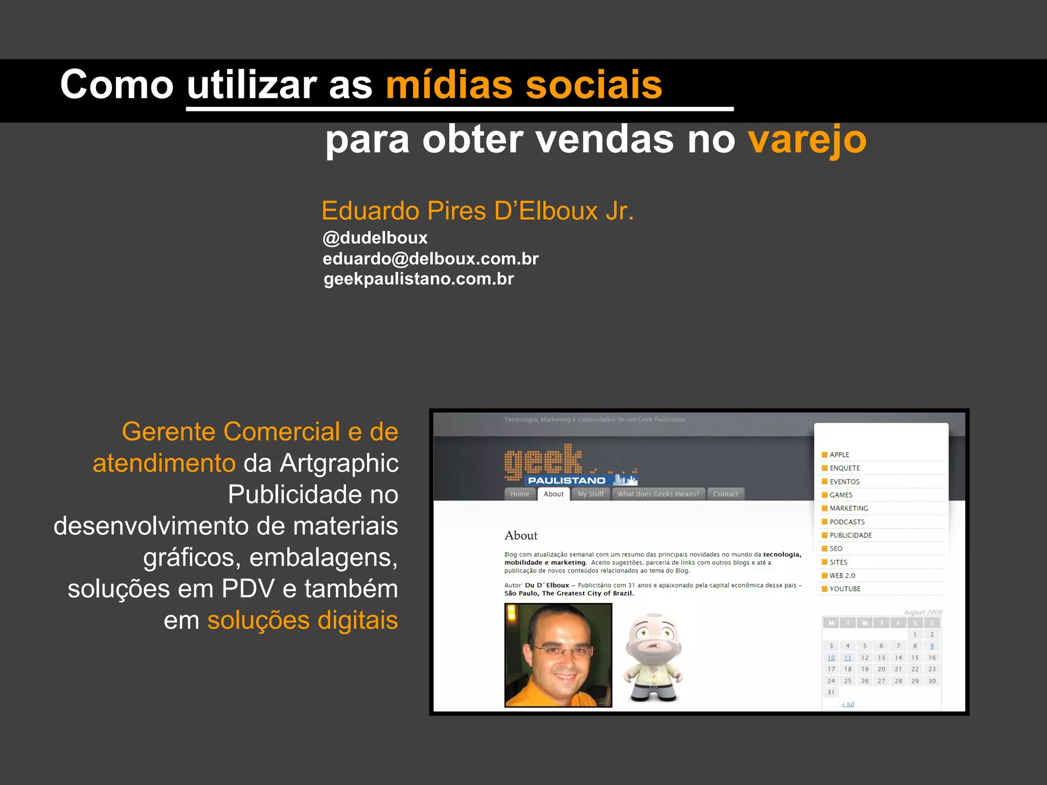 O documento discute como as empresas podem usar as mídias sociais para obter vendas no varejo. Ele fornece estatísticas sobre o uso da internet e das mídias sociais no Brasil, explica como funcionam ferramentas como o Orkut, Facebook e Twitter, e dá dicas sobre como usar essas plataformas para engajamento de clientes e vendas.