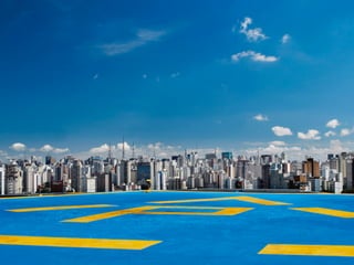 O documento discute a proposta de uma plataforma digital para táxi aéreo que visa reduzir burocracia e aumentar agilidade para empresas e clientes, gerando mais lucro. A solução trará vôos mais baratos e organizados através de um aplicativo que permite escolher rotas, reservar e pagar voos de forma automática. Dados de mercado em São Paulo mostram potencial para 500 voos por dia e receita anual de R$500 mil para a plataforma com base em sua comissão de 7% sobre cada voo.