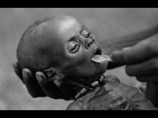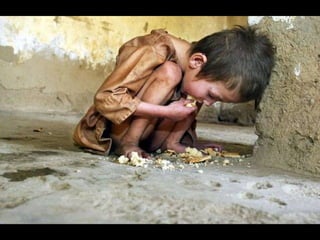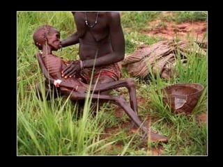 Este documento é um apelo para agradecermos a Deus pelos alimentos e água que temos, evitando desperdiçá-los. Relata a história de uma criança faminta no Sudão que tentava chegar a um campo de alimentos a 1km de distância, enquanto um abutre esperava por sua morte. Pede aos leitores para orarem pelos que sofrem e compartilharem este lembrete com os amigos.