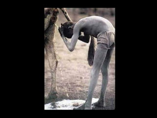 Este documento é um apelo para agradecermos a Deus pelos alimentos e água que temos, evitando desperdiçá-los. Relata a história de uma criança faminta no Sudão que tentava chegar a um campo de alimentos a 1km de distância, enquanto um abutre esperava por sua morte. Pede aos leitores para orarem pelos que sofrem e compartilharem este lembrete com os amigos.