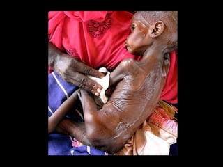 Este documento é um apelo para agradecermos a Deus pelos alimentos e água que temos, evitando desperdiçá-los. Relata a história de uma criança faminta no Sudão que tentava chegar a um campo de alimentos a 1km de distância, enquanto um abutre esperava por sua morte. Pede aos leitores para orarem pelos que sofrem e compartilharem este lembrete com os amigos.