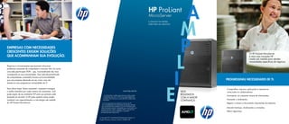 O documento descreve o HP ProLiant MicroServer como uma solução de servidor projetada para pequenas e microempresas. Ele fornece recursos de servidor para compartilhamento de arquivos, aplicativos, impressoras e armazenamento em um pacote de baixo custo e fácil gerenciamento. O MicroServer permite que empresas migrem de redes peer-to-peer limitadas para um ambiente de servidor centralizado para apoiar o crescimento dos negócios.