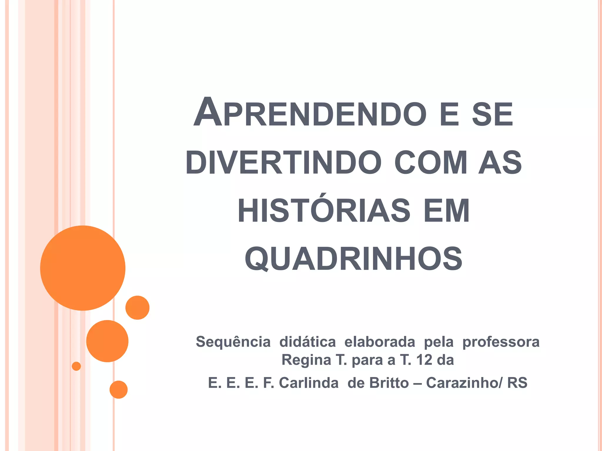 O documento apresenta uma sequência didática elaborada pela professora Regina T. para ensinar crianças do 1º ano do EF a interpretar histórias em quadrinhos, enfatizando a organização temporal e a criação de adaptações. As atividades incluem a leitura de gibis da Turma da Mônica, pesquisa sobre o autor Maurício de Sousa e a criação de tirinhas. A avaliação será baseada na observação do progresso dos alunos e na participação nas atividades, ao longo de um período de 10 a 15 aulas.