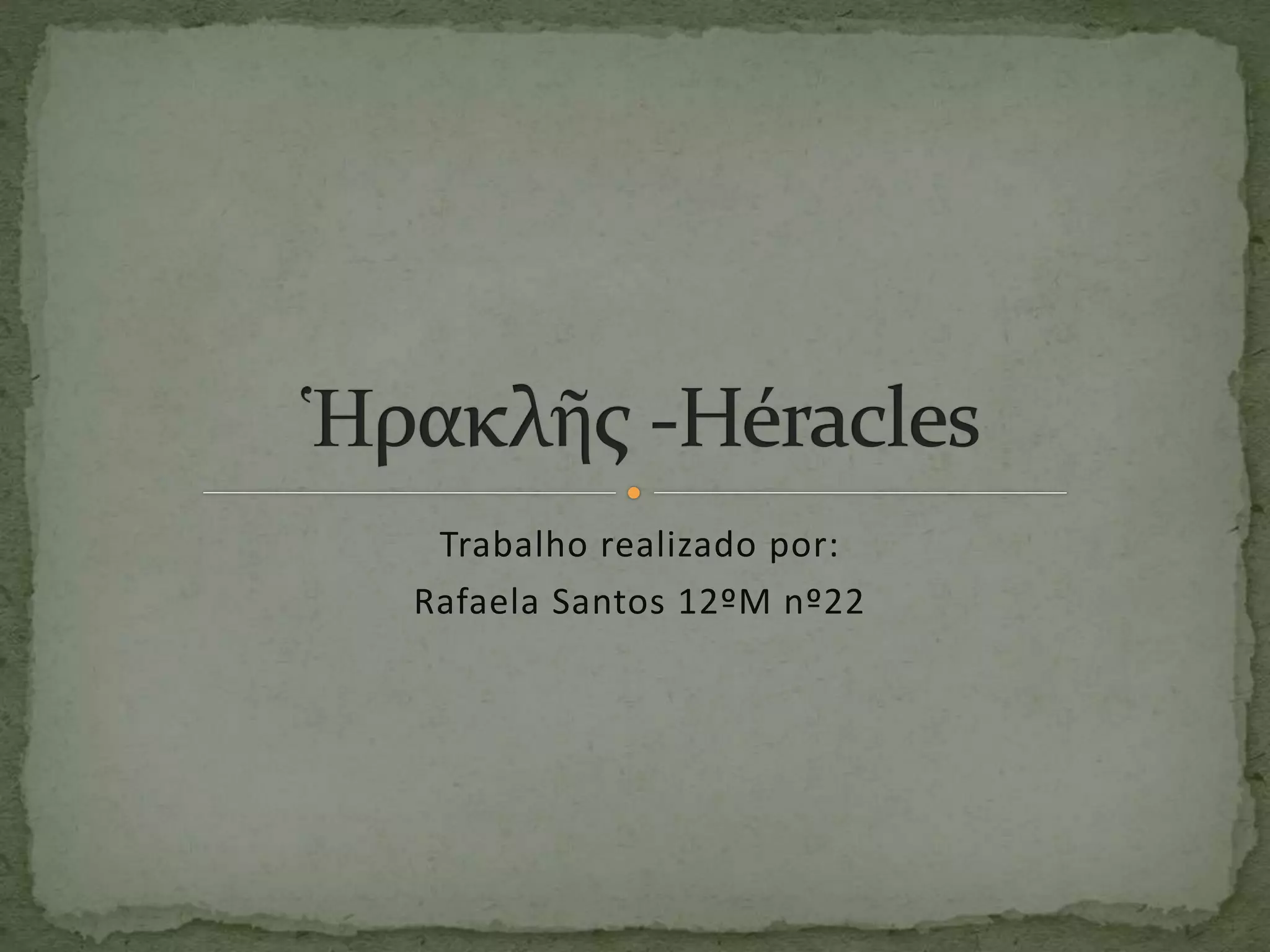 Héracles era filho de Zeus e Alcmena. Simbolizava a força e coragem e era um dos mais célebres heróis da mitologia grega. Realizou Doze Trabalhos, incluindo matar o Leão da Nemeia e derrotar a Hidra de Lerna. Após os trabalhos, foi levado ao Olimpo por Zeus e recebeu a imortalidade.