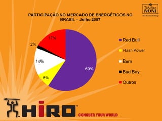 O documento descreve a cronologia do desenvolvimento e crescimento das vendas de bebidas energéticas no Brasil e no mundo entre 1962 e 2007. As principais informações são: 1) As bebidas energéticas surgiram na Tailândia em 1962 e na Europa em 1987; 2) As vendas cresceram rapidamente a partir de 1994, chegando a mais de 20 países; 3) No Brasil, as vendas também tiveram forte crescimento entre 2006 e 2007.