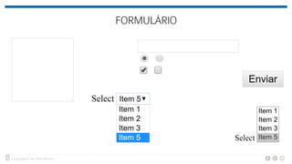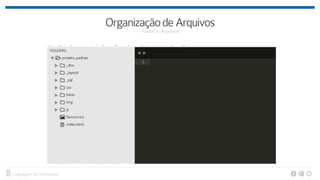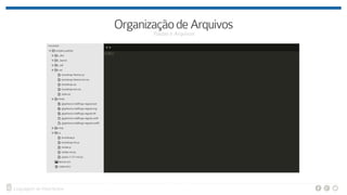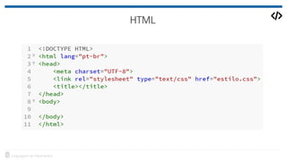 O documento discute os protocolos HTTP e FTP, métodos de requisição e resposta HTTP, elementos básicos de HTML como tags, atributos e estruturação de páginas. Também apresenta exemplos de tags HTML comuns e explica a organização de arquivos em projetos web.