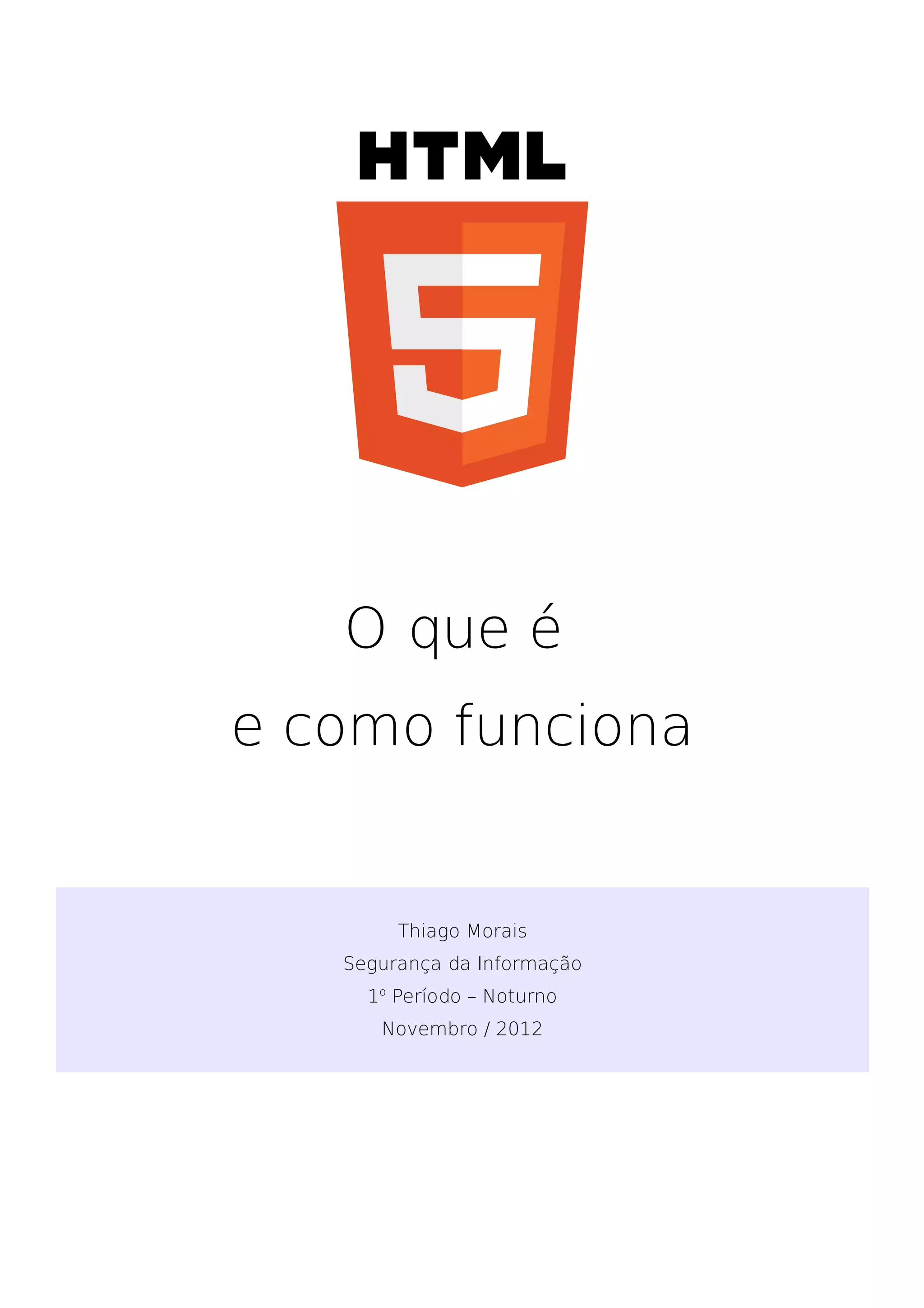 O documento discute as principais novidades da quinta versão da linguagem HTML, incluindo novas tags para vídeos, canvas e geolocalização, além de permitir o cache de aplicações web e uso de bancos de dados offline.