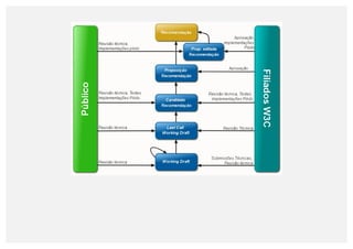 O documento discute as características e APIs do HTML5, abrangendo desde sua história até as novas funcionalidades implementadas. Entre as APIs mencionadas estão a Geolocation, Web Audio e Fullscreen, cada uma com exemplos de uso e aplicações práticas. Além disso, são destacadas especificações recentes e esquecidas que otimizam a interação e manipulação em ambientes web.