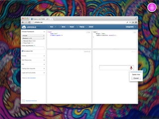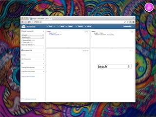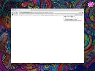 O documento aborda o uso de APIs sensoriais disponíveis em navegadores, como acesso a acelerômetros, geolocalização, câmera e microfone. Ele descreve como testar suporte e utilizar eventos para capturar dados de orientação, movimento e localização do dispositivo. Além disso, fornece exemplos de implementação em JavaScript para acessar essas funcionalidades em aplicações web.
