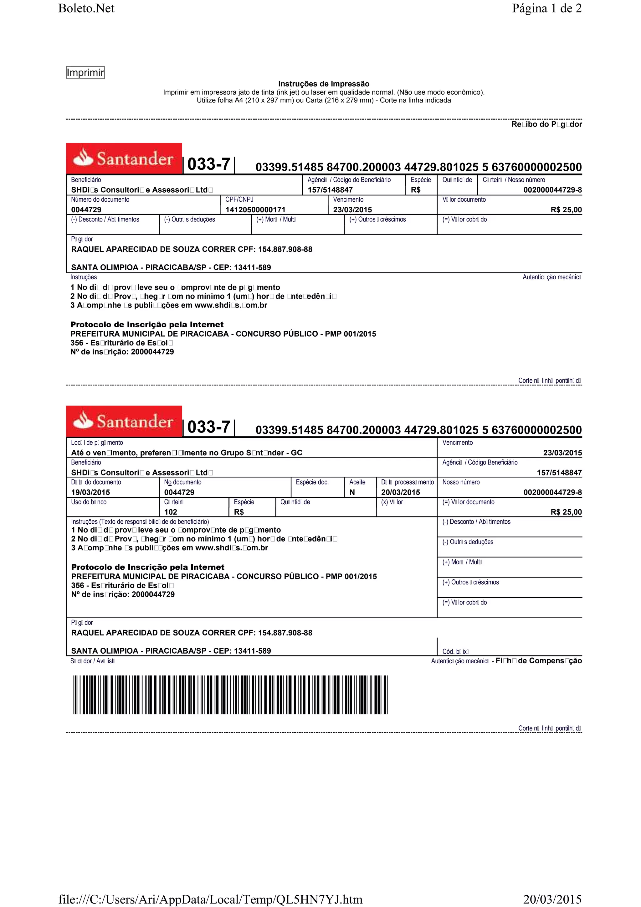 0044729 14120500000171 23/03/2015 R$ 25,00