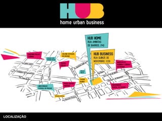 O documento descreve um projeto residencial e comercial mixed-use localizado em São Paulo. O projeto inclui 450 apartamentos residenciais em duas torres, 148 escritórios e lojas em uma torre comercial, e diversas áreas comuns internas e externas, como piscinas, academia, salão de festas e praça. O objetivo é agregar serviços e facilitar a vida dos moradores em um único local.