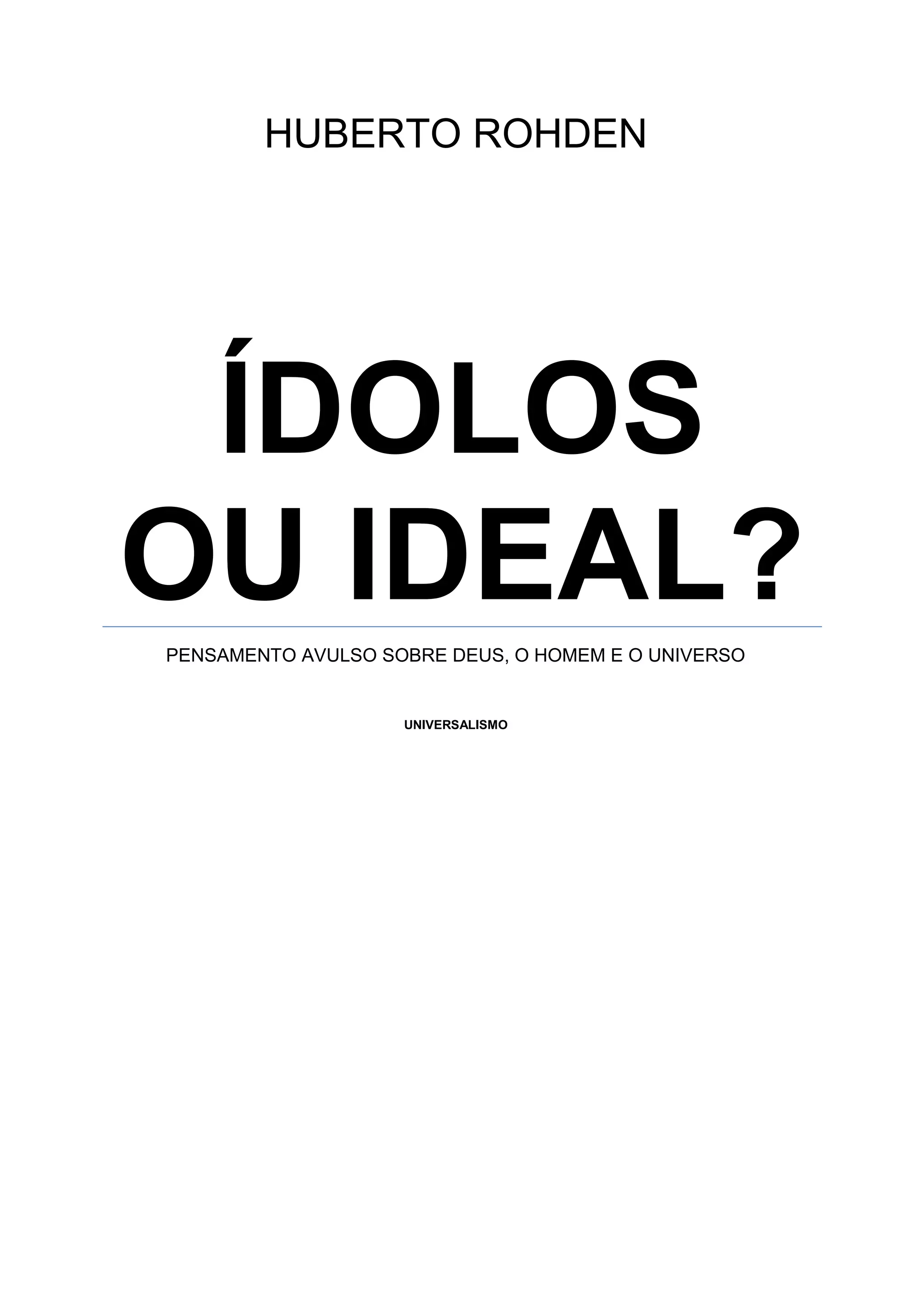Este documento apresenta trechos de um livro de Huberto Rohden sobre Deus, o homem e o universo. O autor discute a importância de "fechar o circuito" ao compartilhar os dons recebidos de Deus com os outros, evitando assim a "velhice moral" do egoísmo. Ele também reflete sobre como o verdadeiro eu está para além das cobiças físicas e mentais, identificando Deus no homem como a alma ou espírito interior.