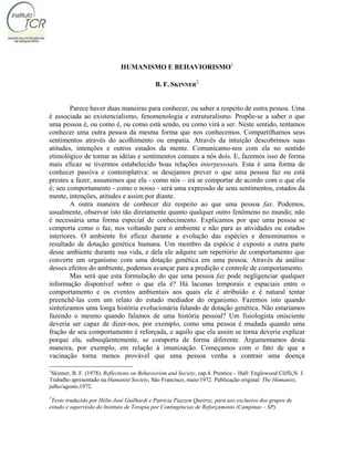 3) Defende-se que uma abordagem behaviorista não desvaloriza o ser humano e