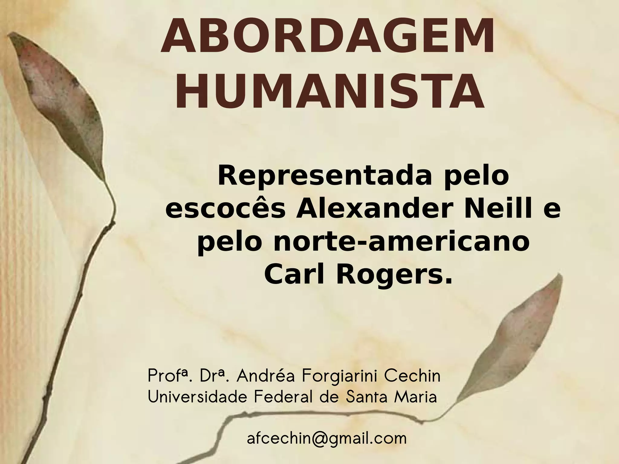 O documento descreve a abordagem humanista na educação representada por Alexander Neill e Carl Rogers. Ambos enfatizam o papel central do aluno no processo de aprendizagem e a importância das relações interpessoais e do envolvimento emocional. Rogers propõe que a aprendizagem ocorre de forma mais efetiva quando o aluno se sente livre para explorar seus próprios interesses.