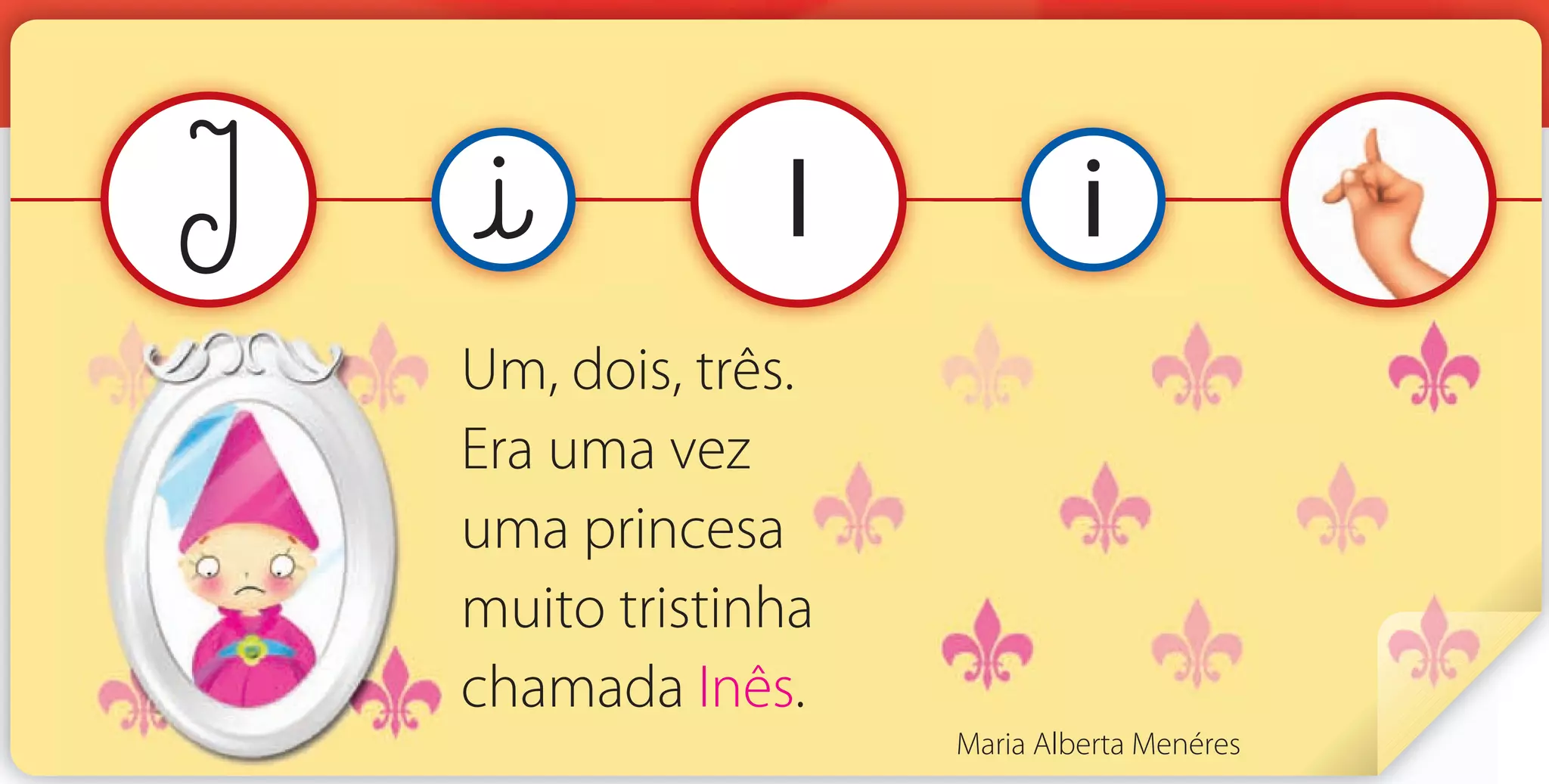 O documento descreve uma princesa triste chamada Inês. Ele pergunta o nome da princesa e o que as imagens mostram. Também pergunta sobre quais letras no nome da princesa têm som em comum com palavras mostradas.
