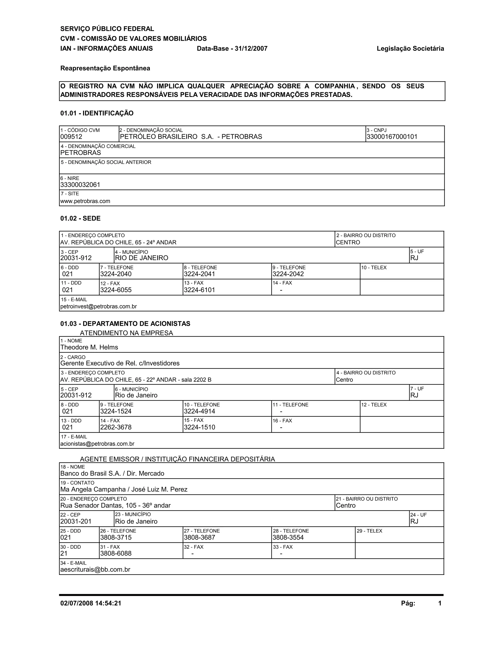 Este documento fornece informações sobre a Petrobras, incluindo sua composição acionária, conselho de administração, diretoria e conselho fiscal. Ele também lista os jornais onde a Petrobras divulga informações e detalha a publicação de documentos como demonstrações financeiras.