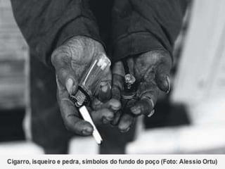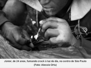 O documento é uma advertência sobre os efeitos devastadores do crack, uma forma de cocaína altamente viciante e destrutiva. Ele descreve a rápida dependência que pode ocorrer após o primeiro uso e os danos físicos e psicológicos que os usuários enfrentam, além de destacar a influência negativa de traficantes sobre jovens. O texto enfatiza a importância de se informar sobre as drogas para fazer escolhas conscientes e evitar o vício.