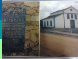 Este documento fornece um resumo da história da cidade de Ibituruna em Minas Gerais. Começa descrevendo a fundação do povoado de Ibituruna pelo bandeirante Fernão Dias Pais em 1674. Também discute a emancipação política da cidade em 1963 e as comemorações do tricentenário de sua fundação em 1974. Fornece ainda detalhes sobre a localização, relevo, clima, hidrografia, economia e pontos turísticos de Ibituruna.
