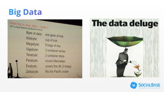 O documento discute o uso de ferramentas de big data e machine learning na SocialBase. Apresenta o IBM Watson, Apache Spark e TensorFlow, comparando suas funcionalidades e preços. Conclui que o Spark é melhor para prototipagem e produção devido ao seu baixo custo e escalabilidade, enquanto o Watson facilita protótipos mas tem alto custo para produção.