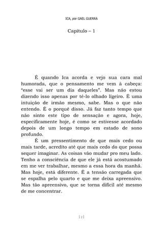 O irmão gêmeo do narrador, Ica, está agitado e inquieto desde que acordou. Quando Ica chega em casa após o trabalho, ele confronta o narrador sobre passar muito tempo no computador trabalhando e ter se afastado de Ica nos últimos anos. O narrador reflete sobre como seu relacionamento com Ica mudou e sobre como vem ignorando os sentimentos de carência de Ica.