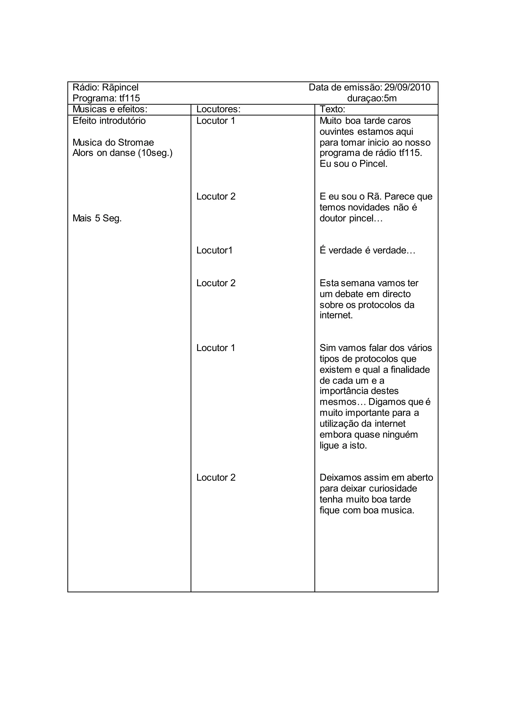 O programa de rádio tf115 discute os protocolos da internet em três frases ou menos: 1) O programa tf115 irá debater os vários tipos de protocolos da internet e a finalidade de cada um. 2) Os protocolos da internet são importantes para o uso da internet, embora poucos entendam sua função. 3) O programa deixa em aberto a discussão sobre protocolos para despertar a curiosidade dos ouvintes.