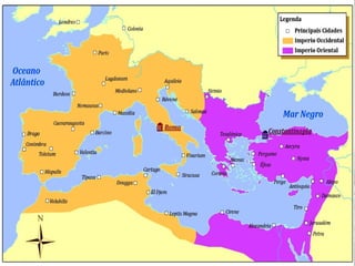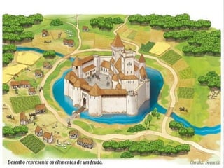 O documento resume a Idade Média na Europa, incluindo a queda do Império Romano, a formação dos reinos germânicos, o desenvolvimento do feudalismo e da Igreja Católica. Aborda temas como a invasão dos bárbaros, o surgimento do sistema feudal e do Sacro Império Carolíngio, a estrutura da sociedade medieval e a importância cultural e política da Igreja nesse período.