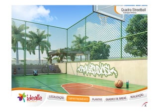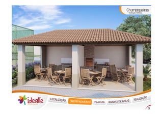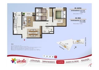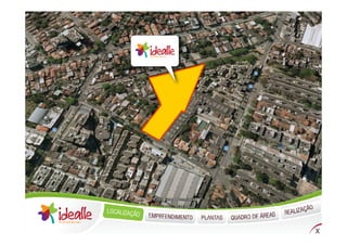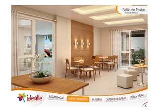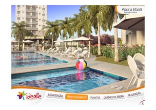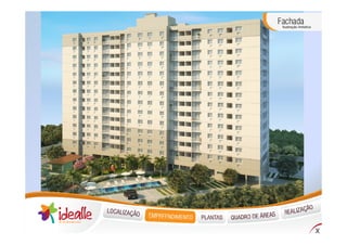 O documento descreve um novo condomínio residencial chamado Idealle Residencial localizado em Cachambi, Rio de Janeiro. O condomínio terá 240 unidades distribuídas em dois edifícios com várias comodidades como piscinas, quadras, salão de festas e áreas de lazer.